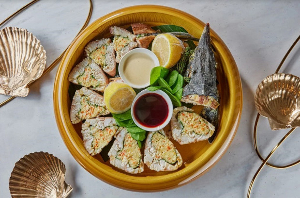 Над этим блюдом придется потрудиться: сначала замариновать стерлядь, чтобы убрать у рыбы жирный привкус, затем приготовить воздушный мусс из трески, а в конце вложить одно в другое. Получается воистину праздничное угощение: стерлядь — рыба царская, испокон веков ассоциирующаяся с накрытым к празднику столом, и подача, которую предлагает отличный повар Евгений Мещеряков, очень эффектная.