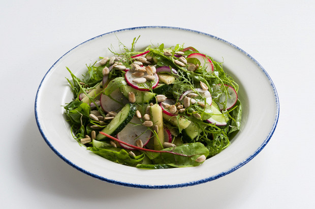 Этот салат придумала наш редактор Людмила Сальникова. И он прекрасен. Нерафинированное подсолнечное масло — это телепорт в лето в деревне. Моя бабушка заправляла салаты только таким, у него сильные, запоминающиеся вкус и аромат. В чем хитрость салата: жареные подсолнечные семечки усиливают вкус в несколько раз и добавляют текстуру, а именно это важно для нас, профессиональных поваров. Основой же салата могут быть любые овощи и травы с вашей грядки. Следите только за тем, чтобы это были молодые и нежные ростки, не перетягивающие на себя внимание.