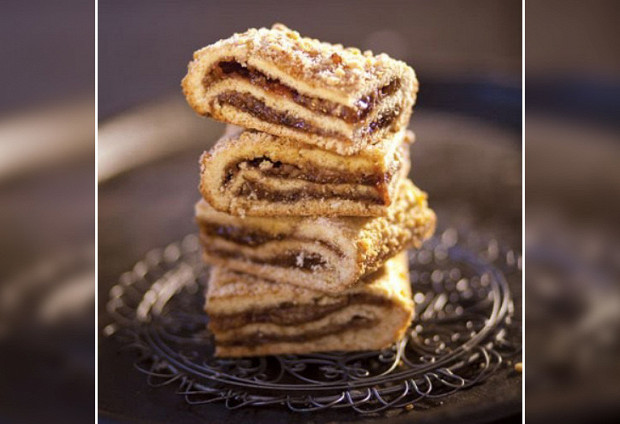 Этот рецепт потребует времени и терпения. Сливы превращают в пюре и прослаивают им тесто. Верхушку посыпают грецким орехом. Получается скорее нежное слоеное печенье с хрустящей корочкой, нежели штрудель в привычном понимании.