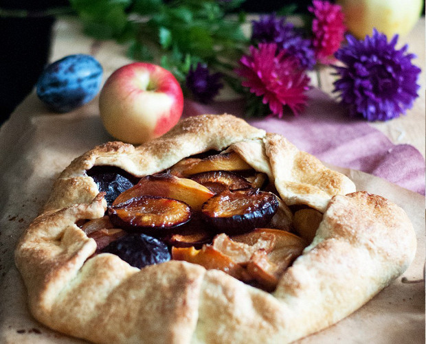 На 200 грамм муки приходится доброе полкило фруктов. Да, галета — это один из самых диетических видов выпечки, потому что теста в ней очень мало, а начинки — неважно, сладкой или соленой — много.