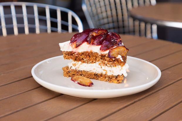 В этом рецепте от Виталия Истомина прекрасно все. Сладкая пухлая коврижка, нежный сырно-сливовый крем и, конечно, томленая слива поверх. Прекрасен он еще и тем, что в зависимости от сезона и вкуса фруктовую составляющую можно менять.