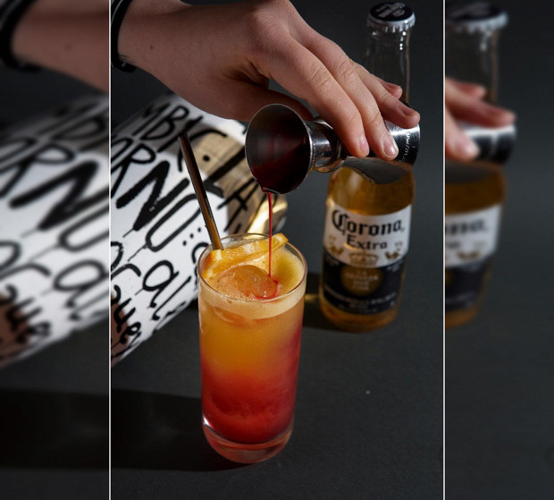 Две алкогольных составляющих — пиво и текила, и три вида сока — лимонный, апельсиновый и гранатовый. Рецепт из петербургского бара El Сopitas.