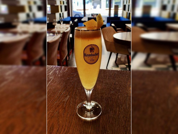 Еще один образец из московского ресторана Krombacher — затейливый и требующий подготовки: пиво, два ликера, содовая и свежевыжатый грейпфрутовый сок.