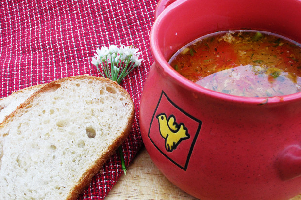 Густой острый суп с мясом (обязательно с телятиной или говядиной), рисом и помидорами — оттягивает как надо. Рис можно брать круглый, можно длиннозерный. Классический набор специй — хмели-сунели, лавровый лист, пара горошин черного душистого перца и базилик. Для остроты можно добавить красный молотый перец или кусочек острого перца.