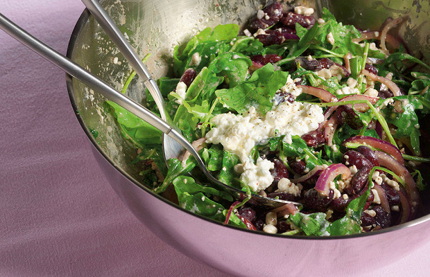 Кроме рукколы в этом салате уверенно чувствуют себя листья корна и щавеля, но идеальнее всего ведет себя зеленая черемша. Используя ее, можно, кстати, отказаться от чеснока. Этот салат вообще допускает множество сюжетных отклонений. Например, вместо соли можно использовать соевый соус — в сочетании с фасолью он очень уместен, а для пущего благообразия можно капнуть в миску немного бальзамического уксуса.