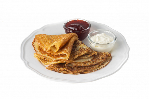 Постные блины — это не очень весело: это блины, лишенные яиц и растительных жиров, а значит, и приятной нежной сливочности. Поэтому хорошо бы подумать о выборе варенья заранее. Тот рецепт, что вы видите ниже, — это блины на газировке. Она помогает тесту разогнать толщу муки и делает его тончайшим.