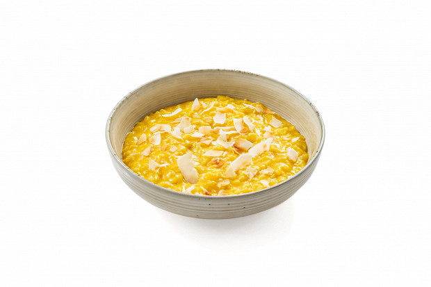 Рисовая каша отлично умеет распариваться и становиться чем-то вроде десерта, особенно когда с ней складываются очень сладкое манго и кокос, дающий блюду сливочность. Обратите внимание: в каше есть и сахар, и манговое пюре. Но, повторим, манговое пюре бывает настолько сладким, что дополнительной встречи с сахаром можно избежать.
