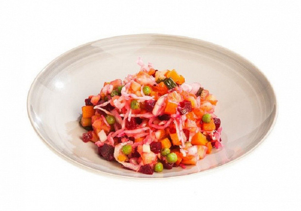 Сейчас уже мало кто помнит, что изначально винегрет — это заправка на основе уксуса. На блюдо название перешло как раз из-за нее. И правильно как раз заправлять этот салат из свеклы, картофеля, моркови, соленых огурцов и прочего легким соусом с добавлением уксуса. Винного или обычного — это уже на ваше усмотрение.