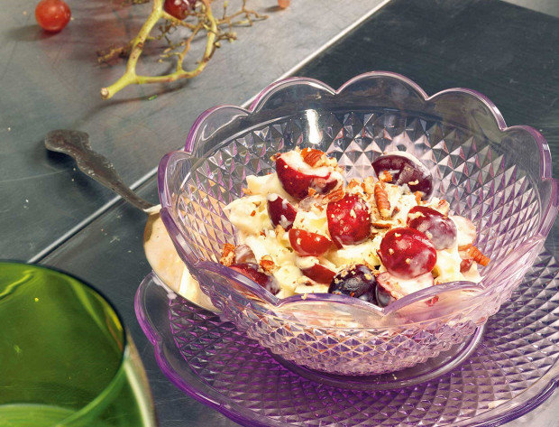 Второй после «Цезаря» по узнаваемости салат в мировом меню. Придуман в нью-йоркской гостинице «Вальдорф-Астория» в 1896 году. В оригинале требуются не грецкие орехи, а орехи пекан. Но разница небольшая. Пекан — чуточку поблагороднее, но этого благородства все равно не видно за сметаной и майонезом.