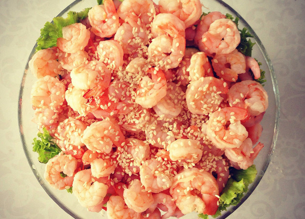 Салат с креветками и кунжутом прост и лаконичен, поскольку эти морепродукты сами по себе не нуждаются в лишнем сопровождении. Майонез в салате можно заменить на натуральный йогурт или оливковое масло, смешанное с лимонным соком, если хочется сделать салат более легким. Сами креветки можно приготовить тремя путями: отварить, запечь или поджарить. Главное, не делать это долгое время. При каждой из этих обработок вкус креветок будет меняться по-разному, но менее привлекательным от этого не станет.