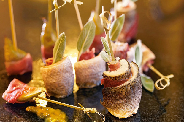 Рулеты из сибаса с прошутто