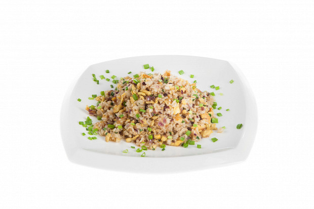 Рецепт родом с Гавайев — тропический и яркий и по настроению, и по подаче. Все составляющие — рис, кусочки ананаса, тертый имбирь и зеленый лук — быстро обжаривают на раскаленном воке, щедро приправив кунжутным маслом. В результате финальный вкус балансирует на грани сладкого и острого, не превращаясь в десерт. Съесть такой рис можно и как отдельное горячее блюдо, и как гарнир к жареной курице, свинине или любому другому мясу — кислоты из ананаса помогают расщеплять жиры и облегчают работу желудку. Если вам больше нравится, когда крупа рассыпчатая, рисинка к рисинке, просто добавьте при варке риса чуть меньше воды.