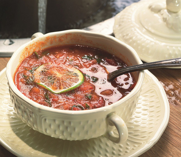 Опять же все полчаса возни, если у вас в холодильнике есть литр готового куриного бульона. Но если нет — найти его можно в прогрессивных супермаркетах. Томатный магрибский суп особенно распространен в Марокко и Тунисе. Готовится за полчаса.