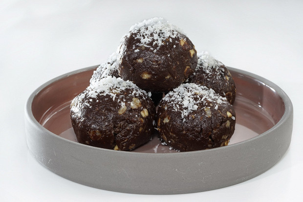 Помните детские опыты по приготовлению десерта из детского же питания? Тут что-то похожее — сложил вместе кленовый сироп, миндальное молоко, кокосовое масло и какао-порошок и катай шарики. Готовить можно сразу много, такое печенье хорошо хранится в холодильнике несколько дней.