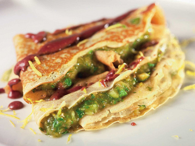И без того душистые плоды фейхоа нужно измельчить в блендере в компании с лимонным соком, цедрой и мятой. Пасту завернуть в тонкие блины на молоке и в идеале — полить горячим шоколадом.