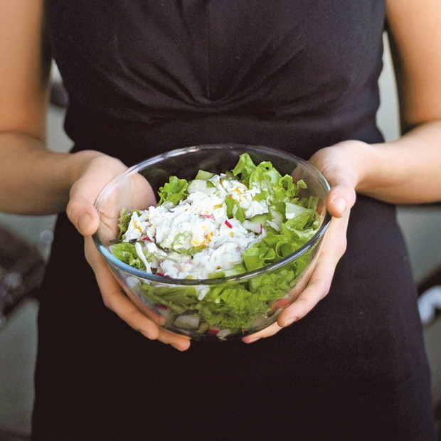 Один из важнейших домашних салатов, который раньше готовили на каждой советской кухне и в каждой столовой. Редис, огурец и зеленый лук с укропом приобретают увесистость в компании с вареным яйцом и сметаной. Укропа и лука советуют брать поровну, но тут дело вкуса и пропорции можно составить самому.