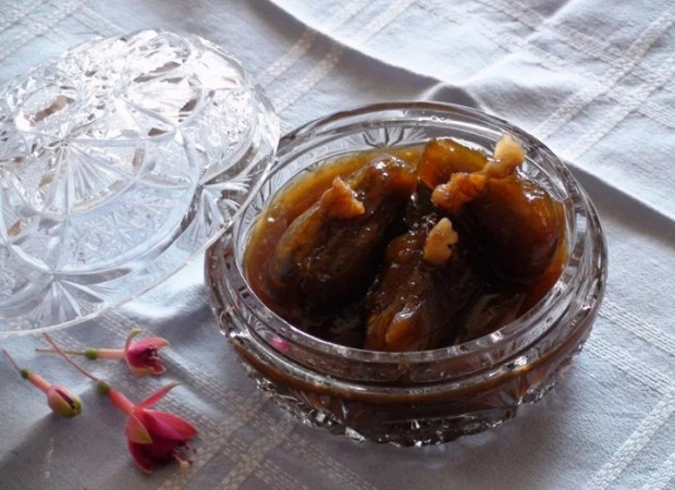 - В кипящий сироп положите баклажаны, варите 15 минут на среднем огне. Снимите варенье с огня и оставьте на 12 часов.