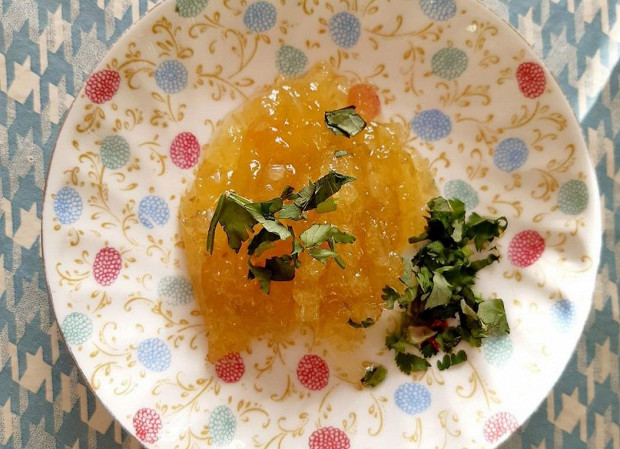 Очень красивый союз, в котором сельдерей вступает в неожиданные отношения с ванильным сахаром, лимоном и лаймом. Наш вам совет: попробуйте взять узбекский лимон — тот, что пахнет елочкой.