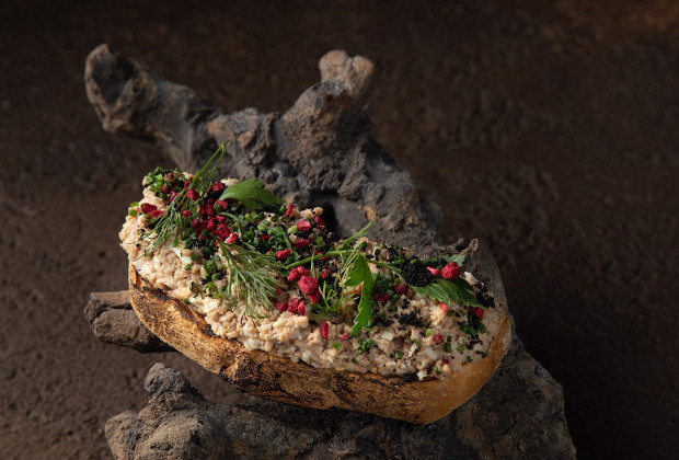 Классическое сочетание: печень трески, яйцо и зеленый лук. Только с некоторыми нюансами. Яйцо тут утиное, а лук представлен в двух ипостасях — белый репчатый и зеленые стрелки. Яйцо нужно будет натереть на терке, печень размять вилкой, а лук нарезать. Все это легко готовится с помощью вилки, ножа, доски и миски, и блендер можно не доставать. Подавать такой паштет рекомендуют с чиабаттой. Рецепт от Рустама Тангирова, бренд-шефа ресторана Lesnoy.