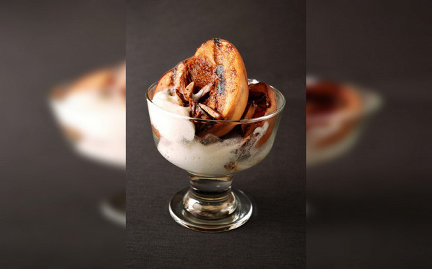 Прежде чем персик попадет на решетку, его стоит хорошенько окунуть в смесь из сливочного масла, коричневого сахара и рома. Подавать с карамельным мороженым.