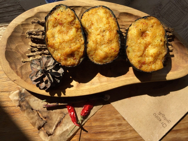 Прежде чем отправить картошку в угли, ее нужно подержать в духовке 45 минут. А уже из готовой картошки вытащите сердцевину, соедините ее с аджикой и сливочным маслом и начините этим клубень. Рецепт Мамии Джоджуа, шефа ресторана «Казбек».