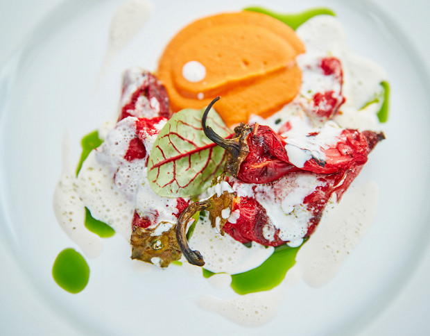 Мексиканский рецепт с огоньком — в самом прямом смысле слова. Перед тем как начинять, перец следует опалить горелкой или на гриле, чтобы появился аромат дымка. В остальном рецепт интересен не жгучестью, как часто бывает у мексиканцев, а, напротив, повышенной сливочностью. Шеф-повар ресторана Tacobar Дмитрий Кишов начиняет его тремя видами сыра (среди которых обязателен чеддер — и для вкуса, и потому что красиво плавится), а также молотым фундуком и песто, тем самым смешав мексиканские и средиземноморские мотивы в блюде в самых приятных пропорциях.