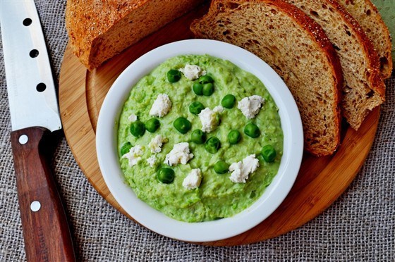 Замечательная история, в которой и без того сладкий и нежный зеленый горошек встречается с густой сметаной и рикоттой.