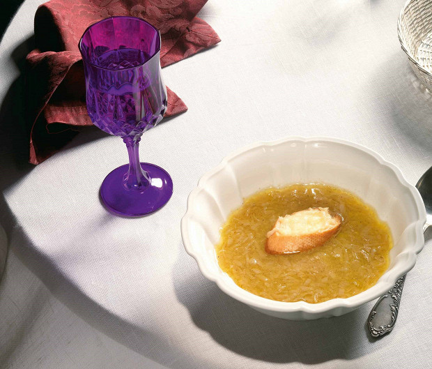 Гордость французской кухни — репчатый лук, благодаря долгому томлению на сковороде он превращается в тягучую сладковатую карамель, которая становится удивительной основой для супа.