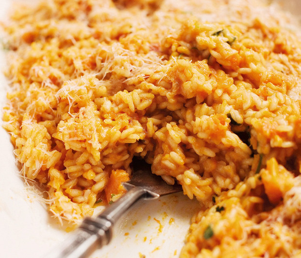 Несмотря на свои внушительные формы, тыква — натура податливая и пластичная. И неизвестно, что в ризотто больше чувствуется — сваренные до состояния аль денте рисинки с упругим внутренним стержнем или ставшая почти аморфной в результате долгого пребывания в бульоне тыква, которая в конце концов превращается едва ли не в соус. Но в этом контрасте и есть притягательность хорошо приготовленного ризотто: с одной стороны, нежность необыкновенная, слитная текстура, эфемерные ароматы пармезана и бренди, с другой стороны, есть что пожевать.