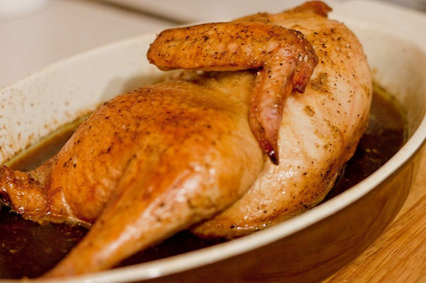 Один из самых необычных и замечательных рецептов курицы. Целая тушка запекается в ароматных специях и постоянно поливается пивом.