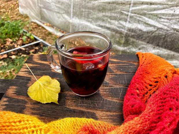 Привычный набор ингредиентов, к которому добавили еще апельсиновый сок — так напиток станет легче и радостней.