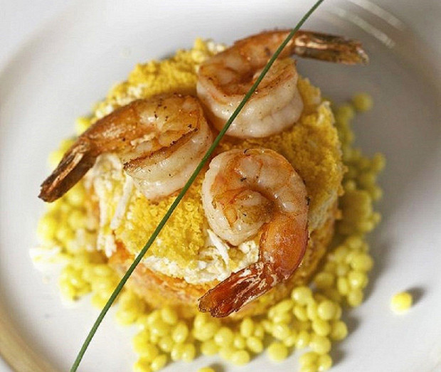 Одна из самых красивых мимоз в городе — так ее готовит шеф Влад Пискунов в своем ресторане «Матрешка». Желток тут сушат на воздухе, чтобы он сохранял свою форму, а в майонез добавляют морковный сок.