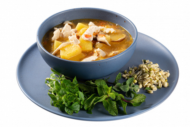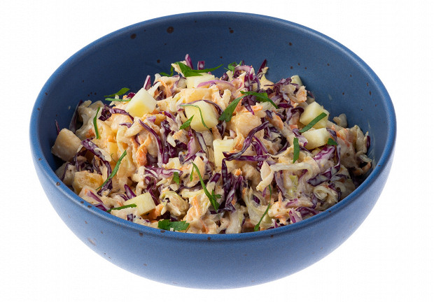 Усовершенствованная будничная классика родом из детства. Исторически в этом салате не было никакого ананаса, но он туда очень красиво вписывается, как и карри с сельдереем.