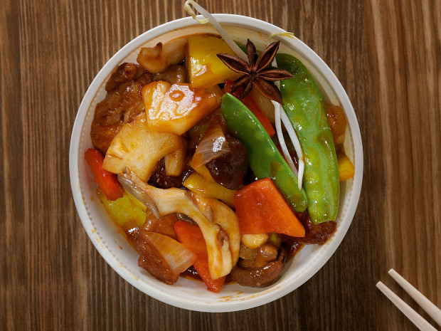 Великая проверенная годами и поколениями классика. Свинина, соединившись с ананасом, становится легкой и звонкой. Тут даже лучше использовать консервированный ананас — в нем гарантированно больше сладости.