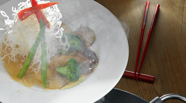 Белые тут далеко не на главных ролях, их аромат сильно сбивают многочисленные соусы. Но он все же проступает сквозь огромное количество ингредиентов, и это замечательно.