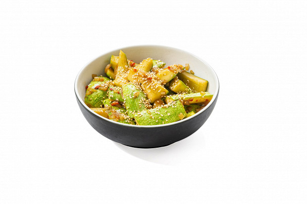 Ничего сложного, просто приготовьте кабачки с типичным для японской кухни набором ингредиентов: соус терияки, перец чили, соевый соус и кунжут. Правда, в готовке они почти не нуждаются — на тепловую обработку отведено всего две минуты. Очень похожи на битые огурцы, но со своим неповторимым колоритом.