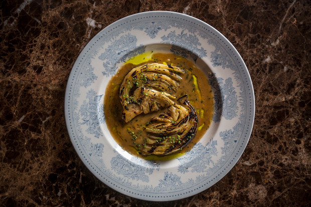 Рецепт Владимира Чистякова, шефа столичного ресторана Buro TSUM. Трюфельное масло — хорошее подспорье для любого продукта, оно способно превратить в блюдо высокой кухни даже простую капусту. Такой же соус можно с неизменным успехом применять практически с любыми запеченными овощами. Главное, не думать, что трюфель скроет недостатки продукта — все же капусту (да и другие овощи) лучше брать молодую, сочную, полную вкуса и аромата, потому что солирует в блюде именно она.