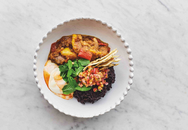 Рецепт великого и прекрасного Джейми Оливера. Всевозможные овощи сначала обжариваются на сковороде, потом томятся с приправами и рисом и, наконец, соединяются с хрустящими лепешками, сальсой и йогуртом на одной тарелке. Бесценно!