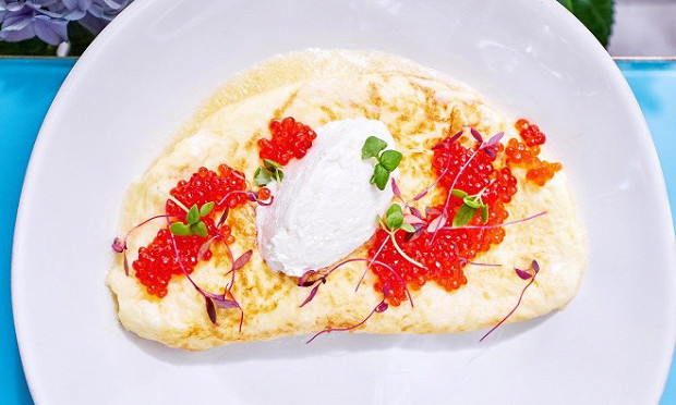 Cкрэмбл с рикоттой и красной икрой