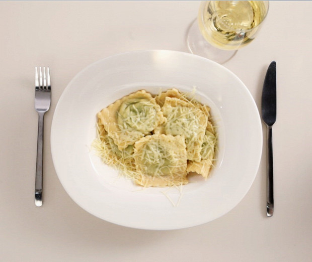 Рикотта и шпинат, объединенные в одной миске, — сплошная нежность. Характера им придает мускатный орех и пармезан, которым следует посыпать уже готовые равиоли.