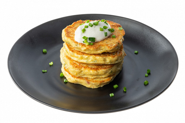 Панкейки из корня сельдерея с творогом и копченым окороком
