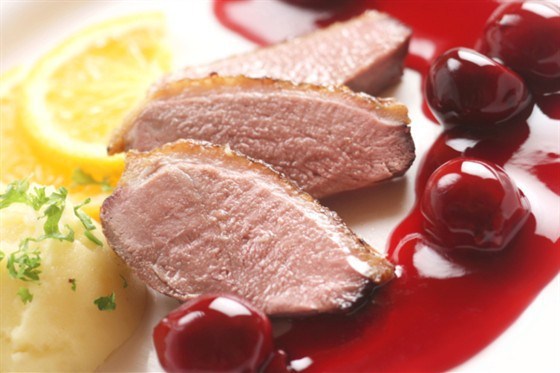 Утка любит сладость, и вишня для нее подходящий товарищ — в меру приторная, в меру кислая.