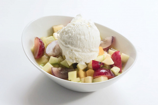 Освежающий десерт, замечательный источник вкусной клетчатки: четыре вида фруктов, хорошенько пропитанных апельсиновым соком, и нежное ванильное мороженое. По мотивам рецепта фруктового салата Сниффа из «Поваренной книги Муми-мамы».