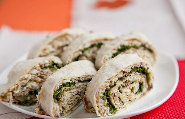 Быстрая закуска, которая получится при условии, что лаваш будет свежайшим: иначе он засохнет и не свернется в упругую колбаску.