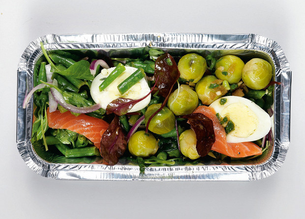 В этом салате стручковая фасоль смягчает соль форели и белковую настырность яйца. Подавать в холодном виде.