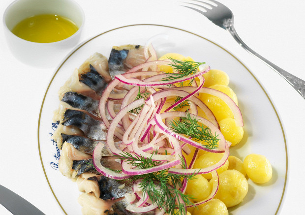 Скумбрия из тех редких рыб, в которых вкуса столько, что хоть отбавляй. Поэтому для самой рыбы, в принципе, ничего, кроме соли и сахара, не нужно. Остальные ингредиенты, заявленные в рецепте, помогают обрести характер луку и картошке.
