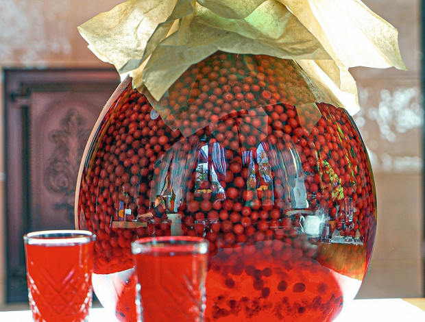 Эту наливку делают в тульском ресторане-пивоварне «Петр Петрович», что расположен в тульском центральном парке. К традиционному набору из сахара и брусники добавляют еще розмарин — для пущей душистости.