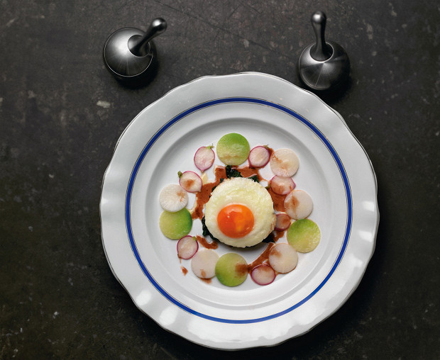 Нарядная праздничная закуска, где зеленая редька используется на равных вместе с дайконом и обычной редиской. Рецепт велит использовать сушеный шалфей, и это тот случай, когда не стоит менять его на свежий — получите уж очень интенсивный аромат.