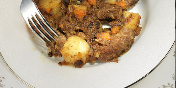 Классика субботнего обеда и большинства тех, кто позволяет себе мясные праздники. В оригинальном виде такое мясо ставится в печь еще с ночи и при низкой температуре за много часов доходит до почти бесплотной кондиции. Морковь в праздничное рагу обычно режут курглыми кусочками. Они символизируют монеты, а именно на Рош-а-Шана решаются в том числе и финансовые обстоятельства наступающего года.