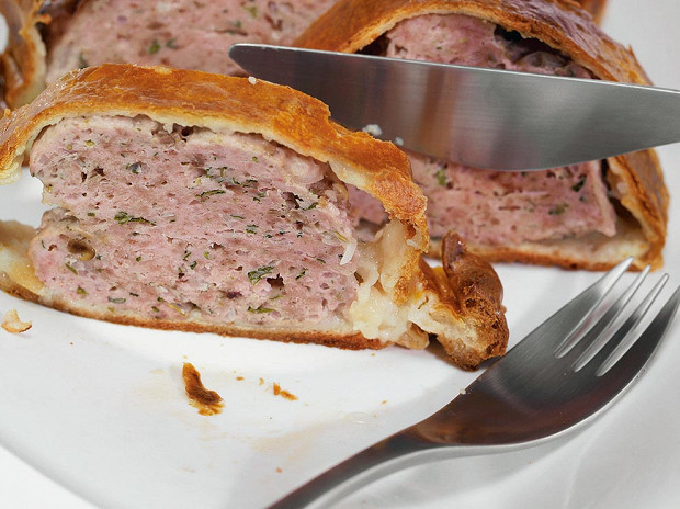 Этот рулет — редуцированная версия говядины «Веллингтон»: с говядиной и грибами, но без паштета.